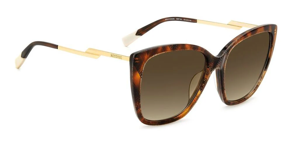 Elevate your style with these Missoni sunglasses for women. The square shape in Havana Pink/Brown Shaded adds a touch of sophistication to any outfit. Made with acetate frames in a stylish Havana color, these sunglasses feature brown polycarbonate lenses for ultimate UV protection. The 57/18/145 size ensures a comfortable fit, while the MIS 0123/G/S model exudes luxury and elegance. With adjustable lenses, these sunglasses are both practical and fashionable. Shop for authentic Missoni eyewear on Otticanet and make a statement wherever you go.